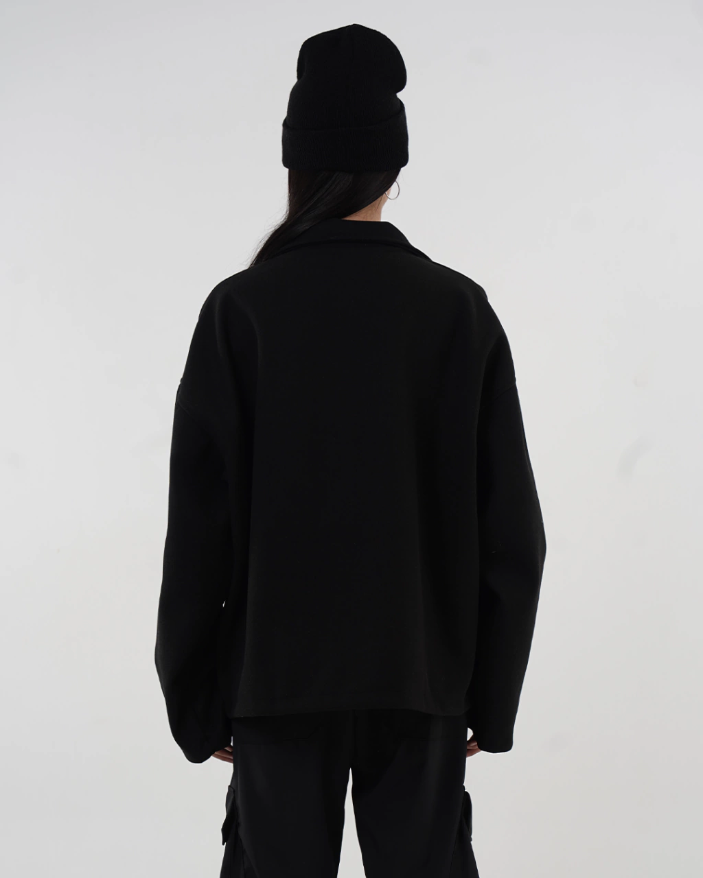 - Cuenta con cuello solapa, aportando estructura y una silueta clásica.