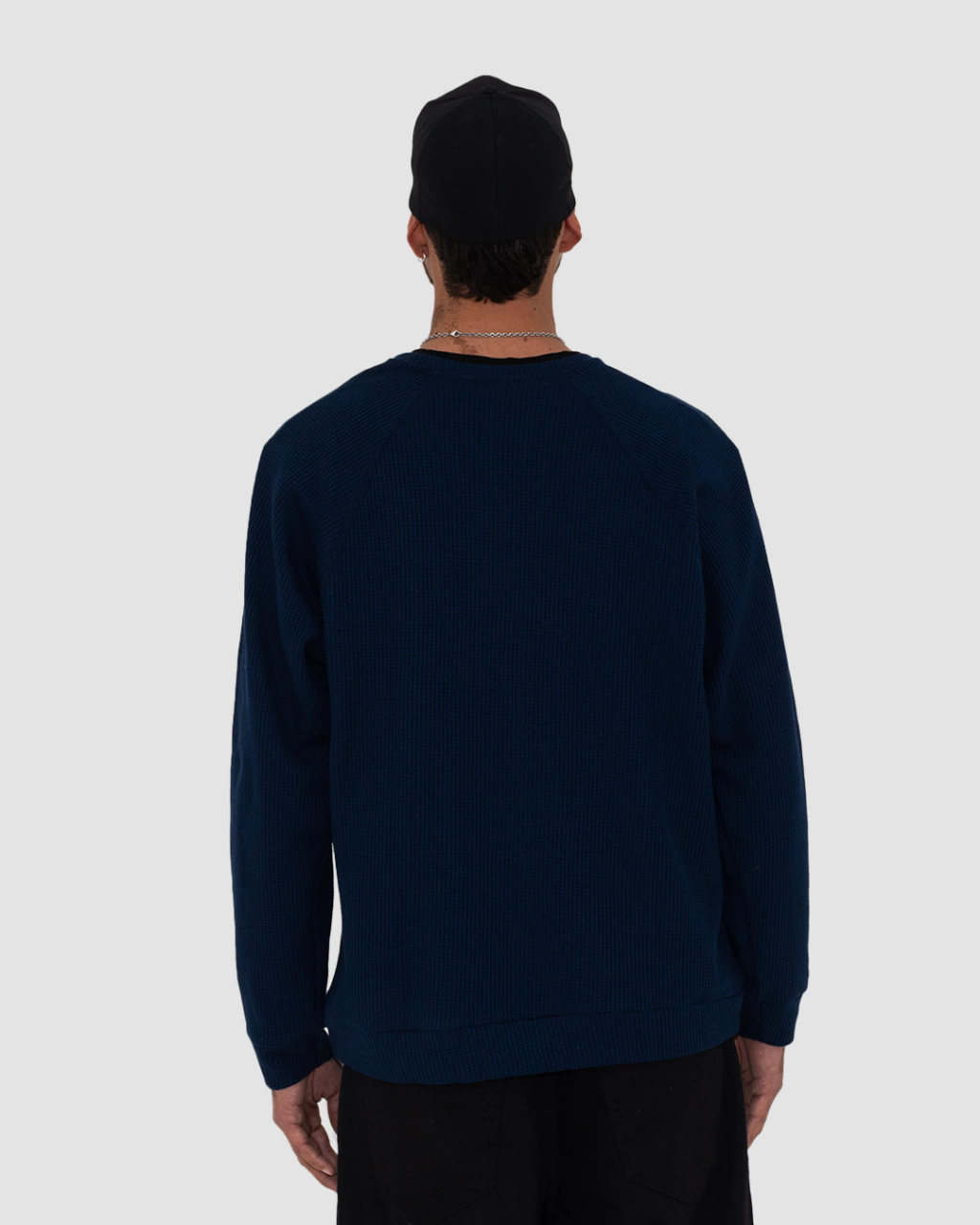 • Sweater confeccionado en tejido waffle, con una textura en relieve tipo panal, que aporta carácter y confort visual.